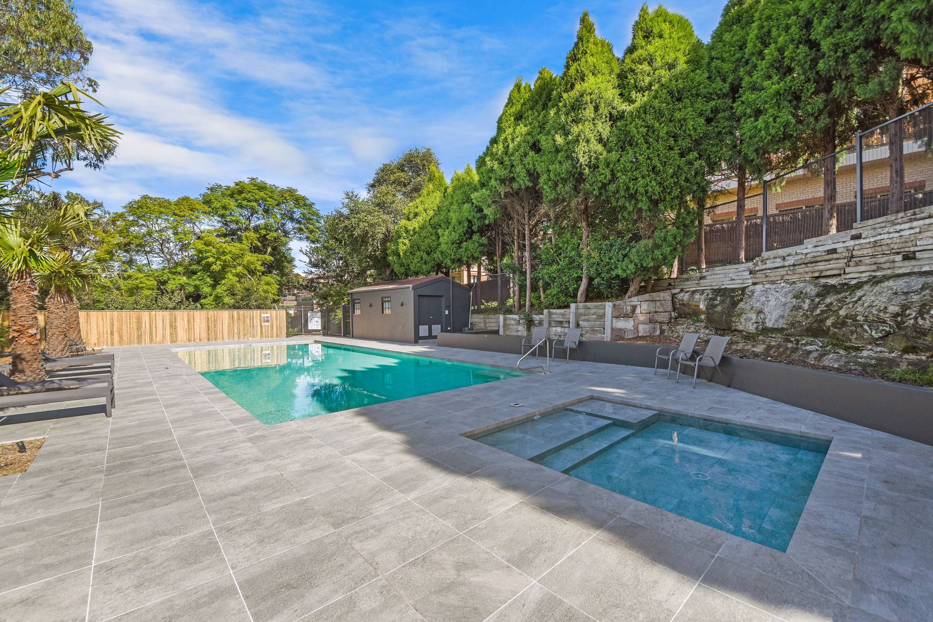 > Private, over-size sunbathed entertainment terrace features tranquil leafy surrounds