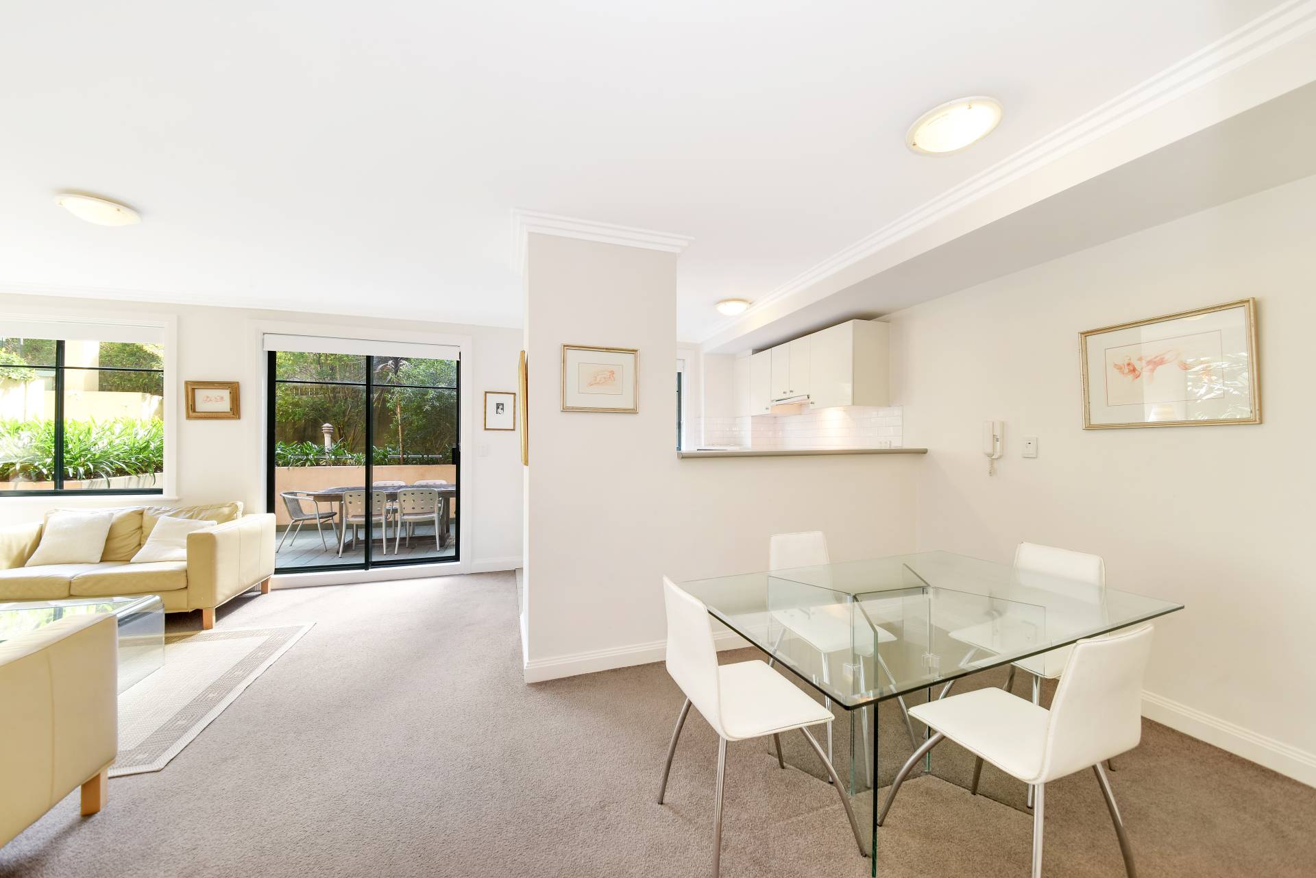 > Spacious sun-filled lounge/dining area opening onto private North facing courtyard ideal for entertaining