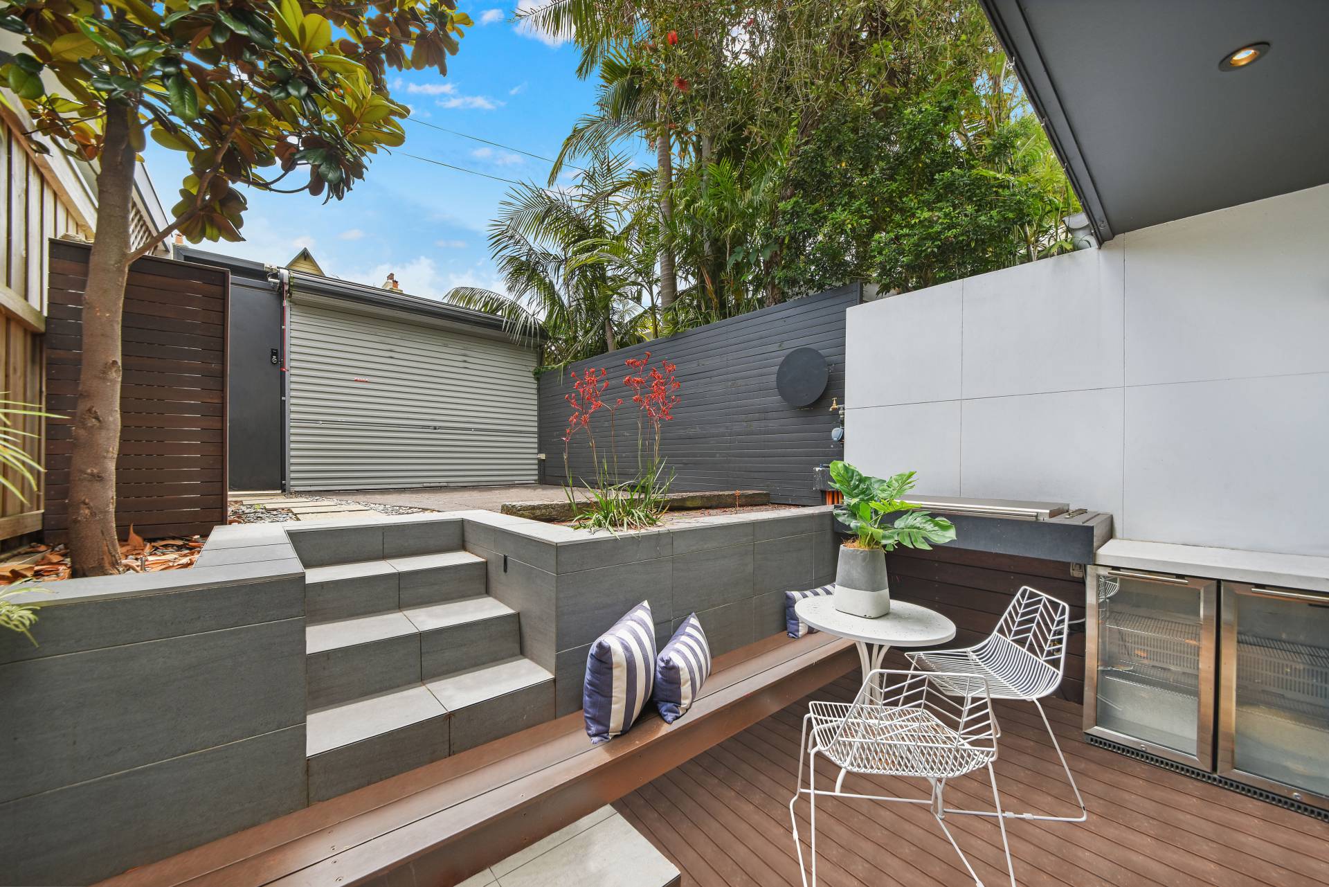 > Off street parking via rear lane with remote access Perfect location, close to Balmain's cafes, restaurants, shops, schools & transport.