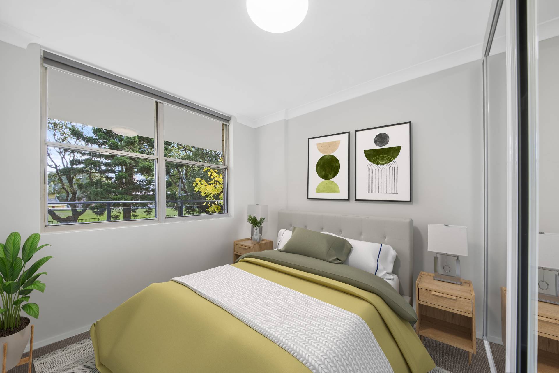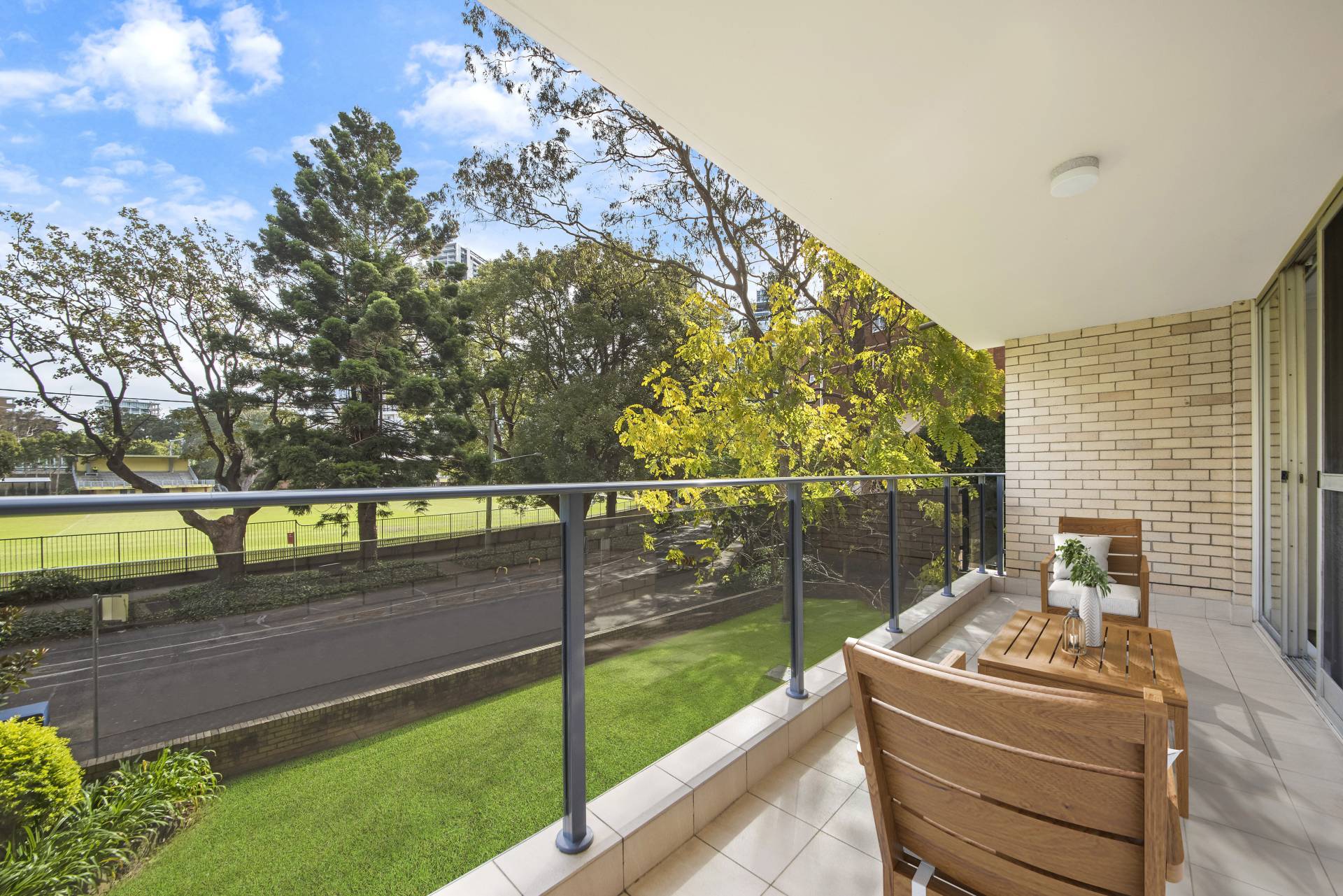 > Lush green park views enjoyed from living, kitchen, bedrooms and balcony