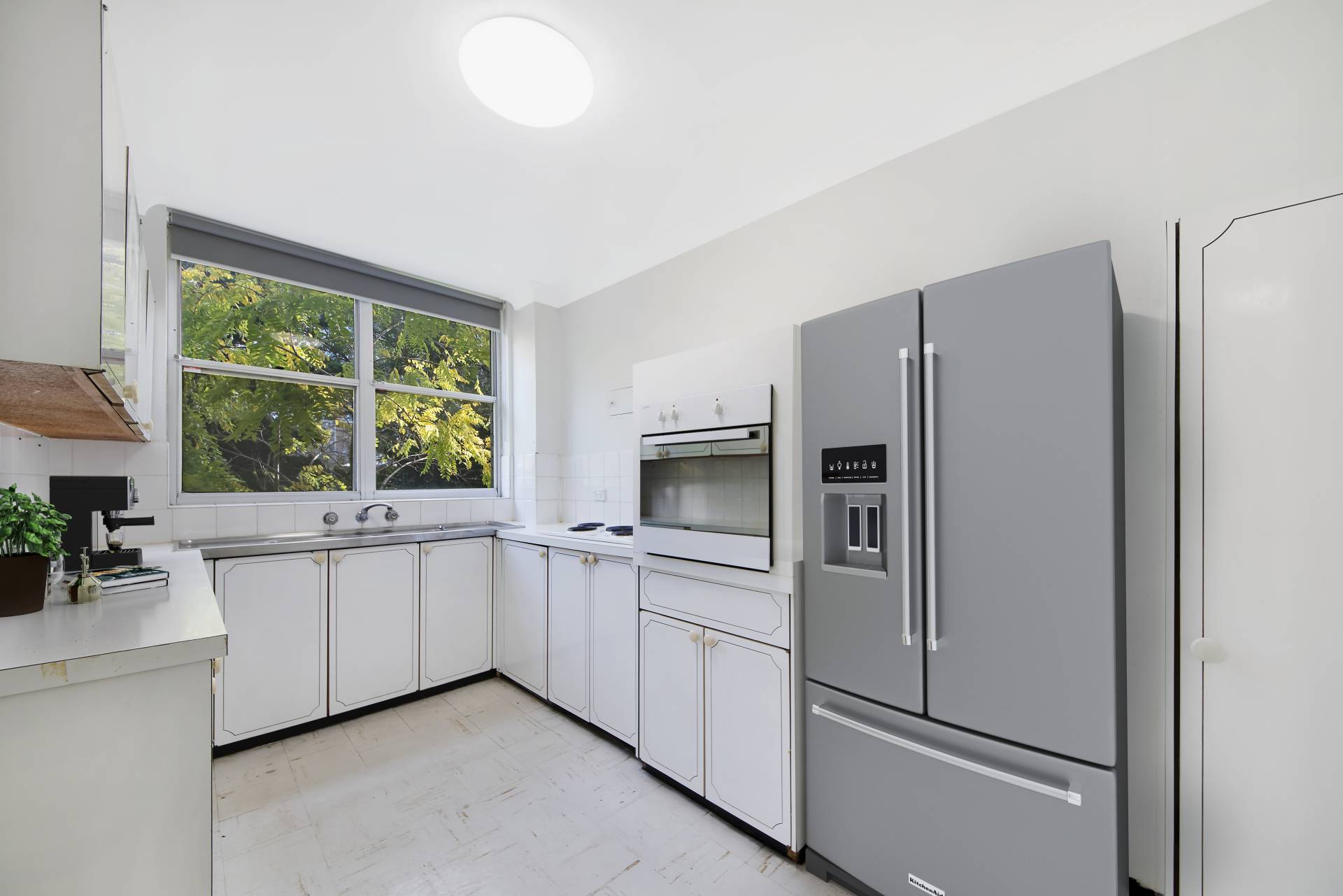 > Well-scaled kitchen and bathroom with potential to refresh