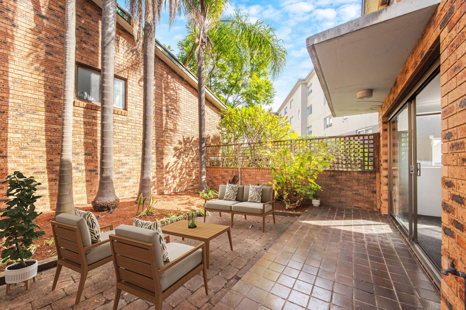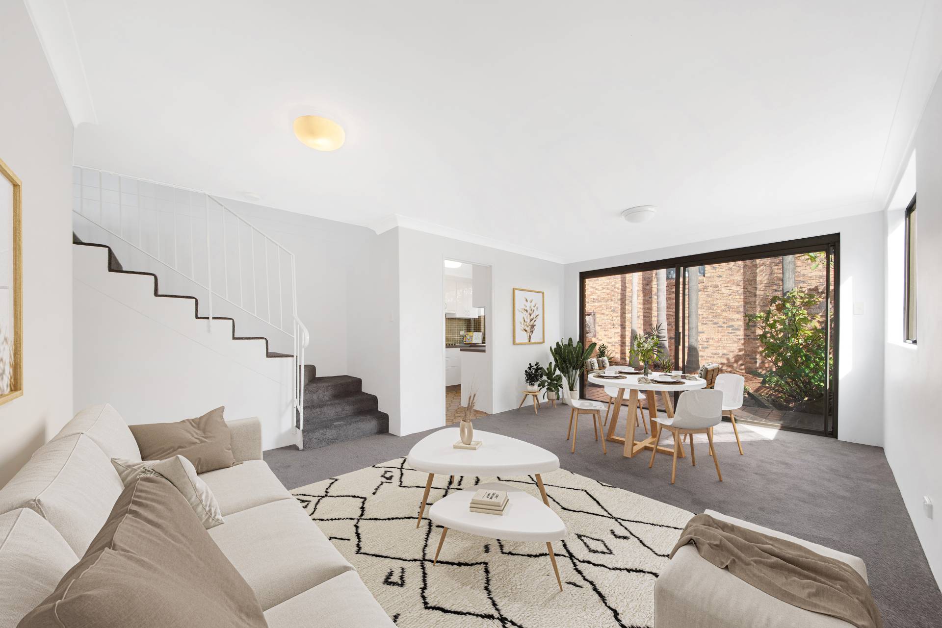 > Open-plan living/dining room with easy access to a private low-maintenance courtyard