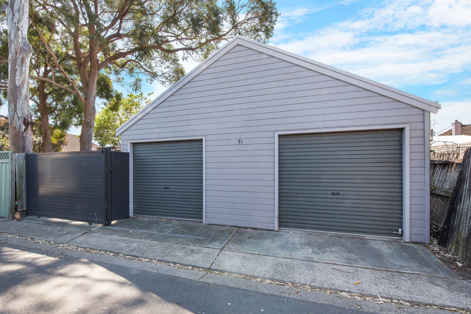 > Double lock-up garage and open secure parking space with remote access faces onto Ernest Lane.