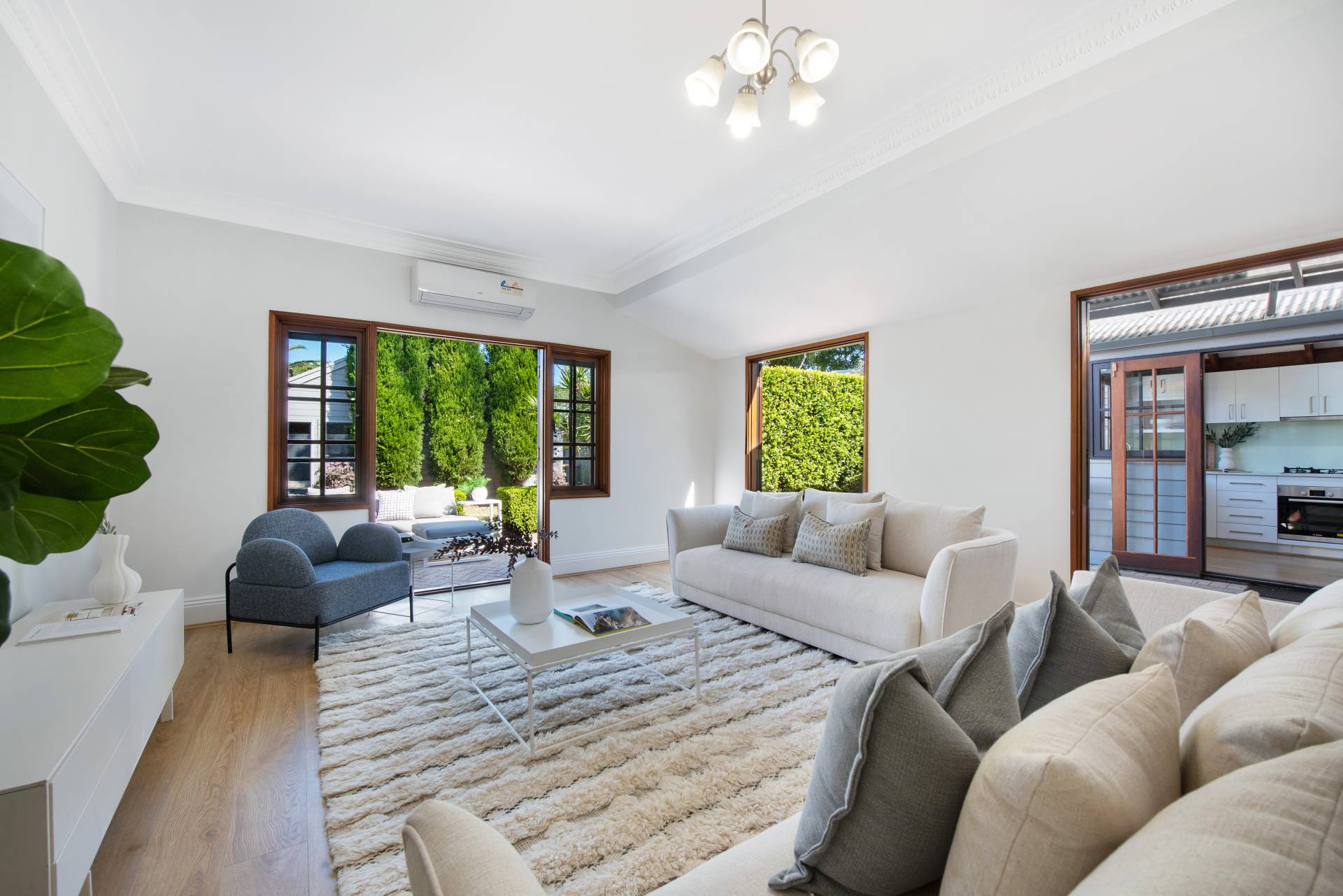 Original features are complimented by sympathetic upgrades. Comprising four generous bedrooms, main with WIR/dressing room and ensuite.  Follow the hallway and pass from the older cottage into a light filled space with stylish kitchen and dining areas adjoining the large, airy and light filled living room. Multiple French door entry points link the spacious living, dining and kitchen areas creating a seamless flow for easy access when entertaining, relaxing and playing in the large private sun filled rear garden.