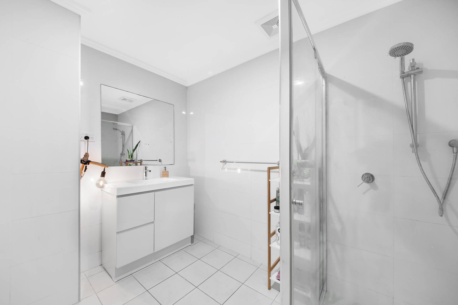 > Designer bathroom with premium fittings & floor to ceiling tiling