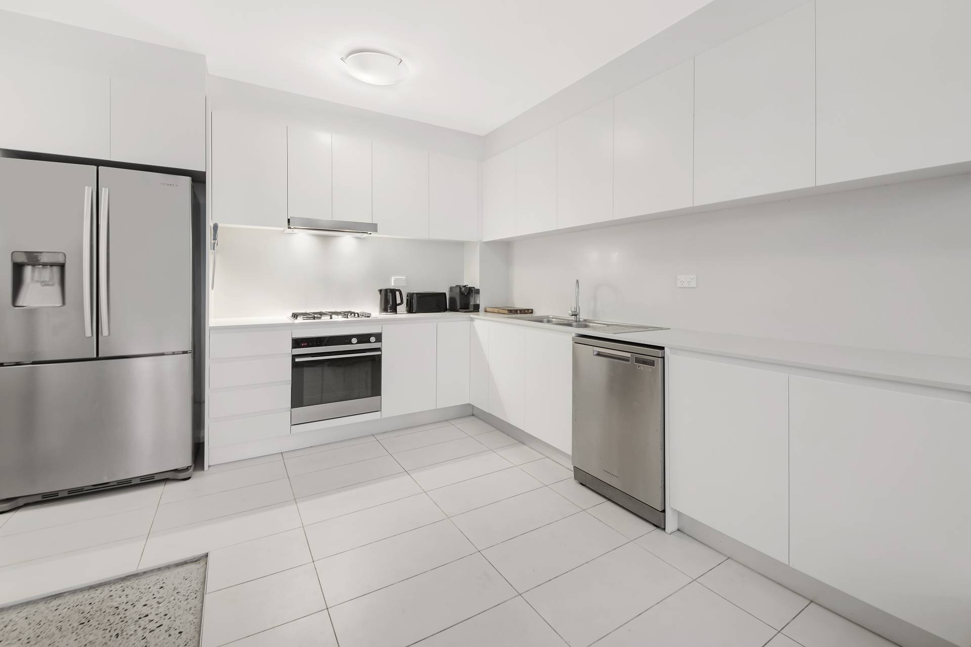 > Gourmet kitchen with modern appliances, gas cooking & stone benchtops