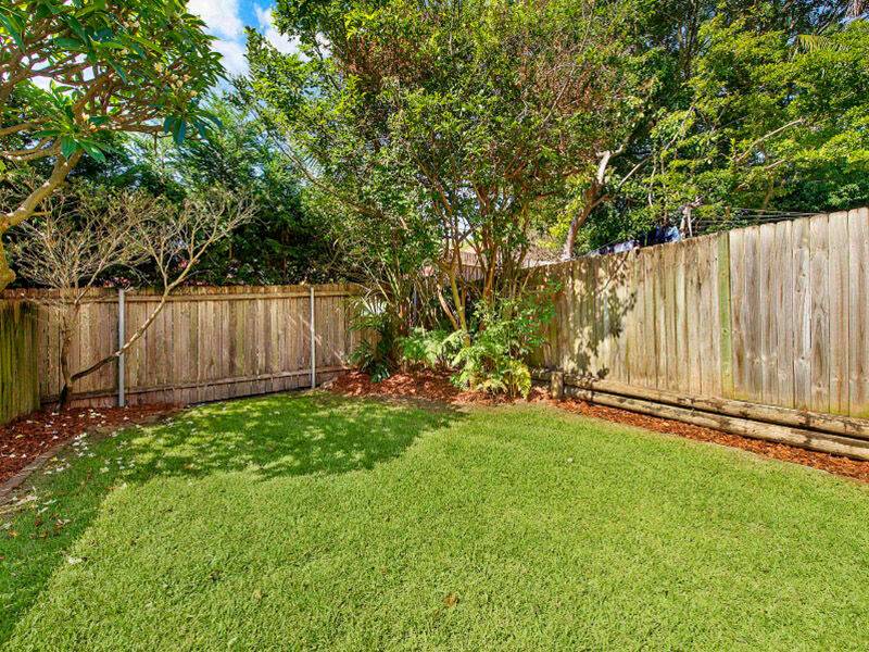 > Fully enclosed rear yard with well-established lawns/garden bed