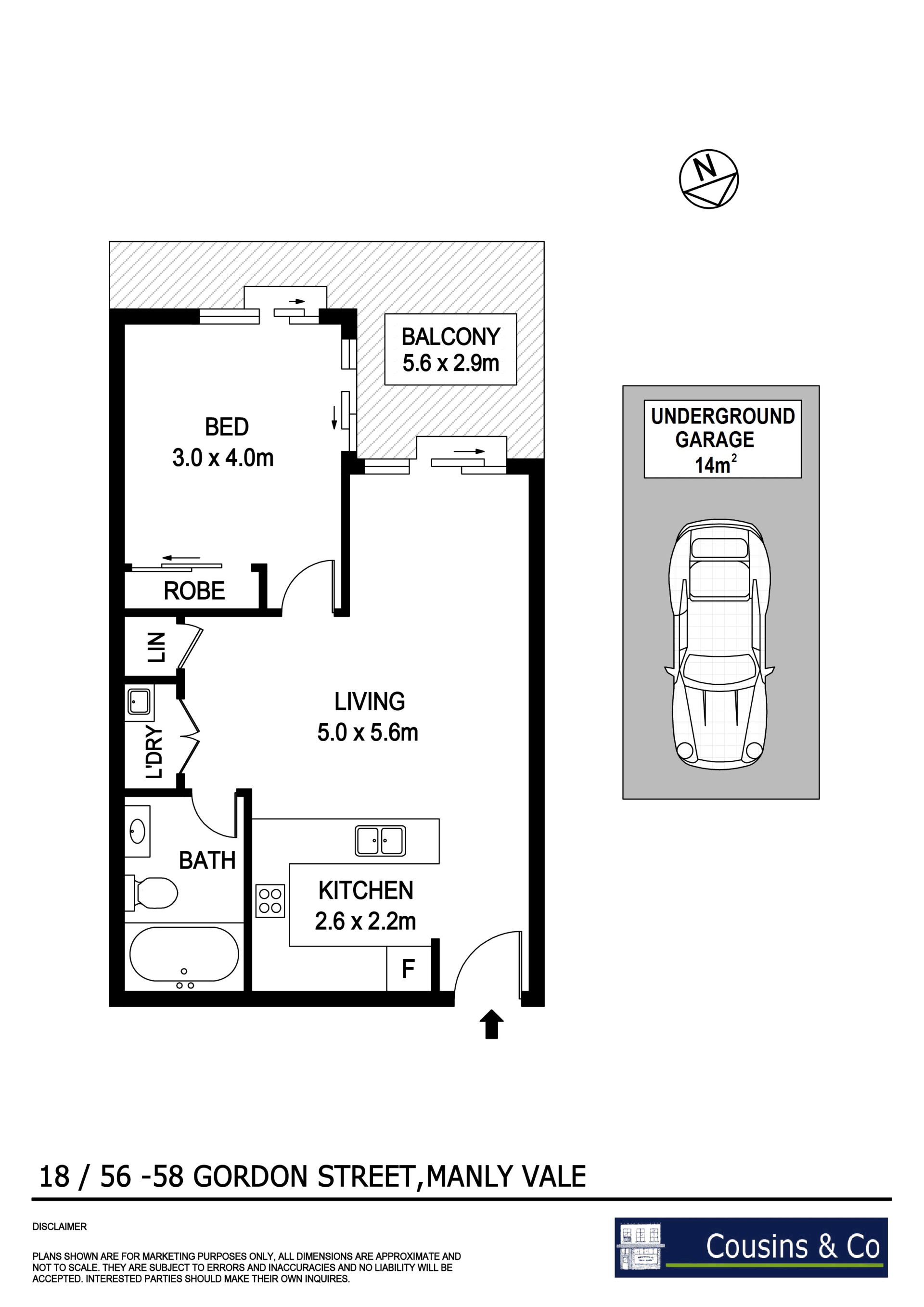 Internal area including balcony 56sqm, plus parking space 14sqm.