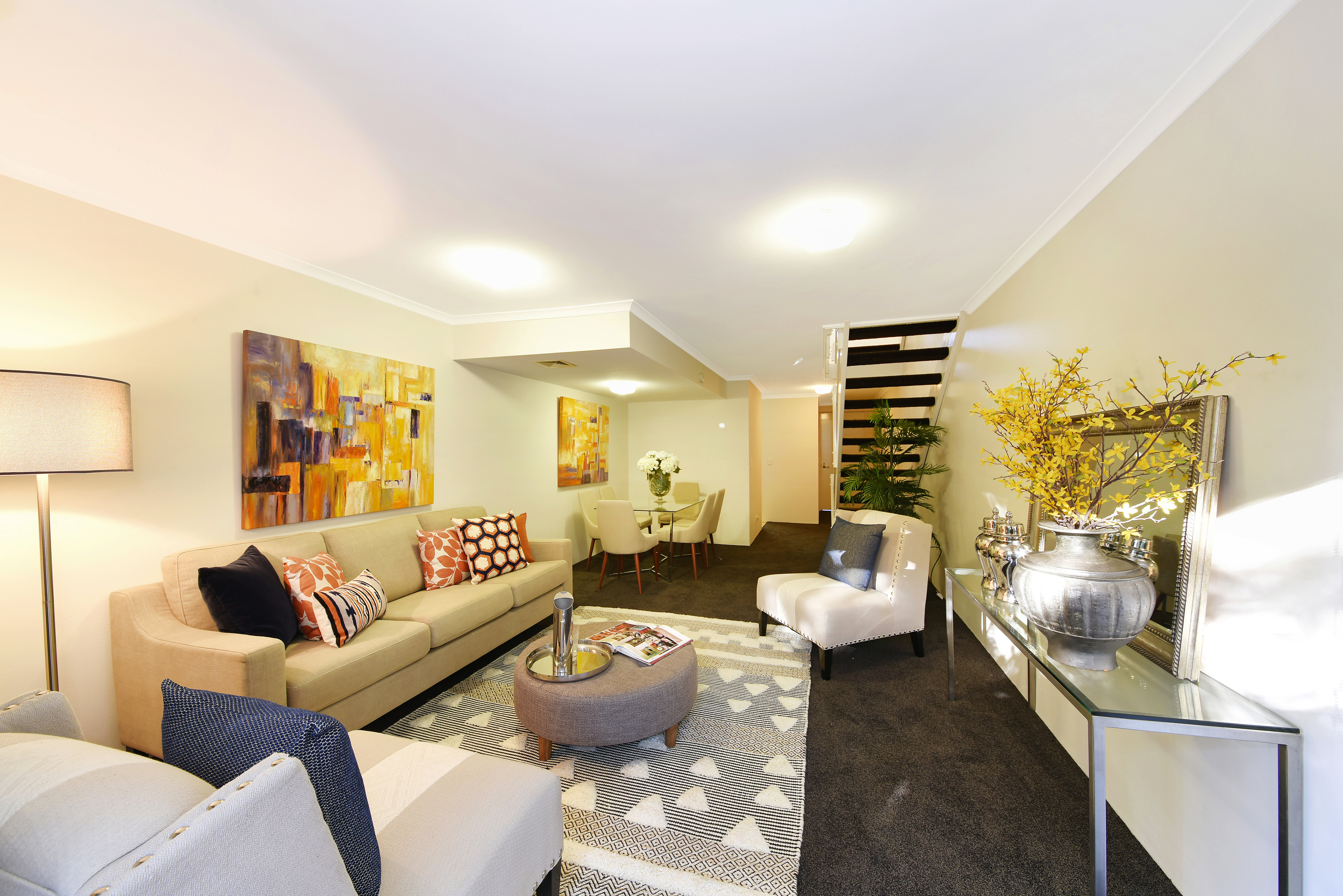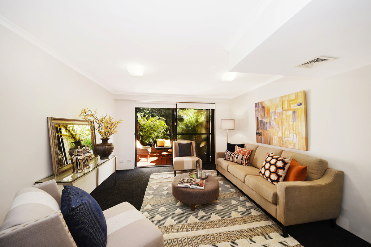 > Spacious lounge/dining area opening onto sun-filled private rear courtyard/garden