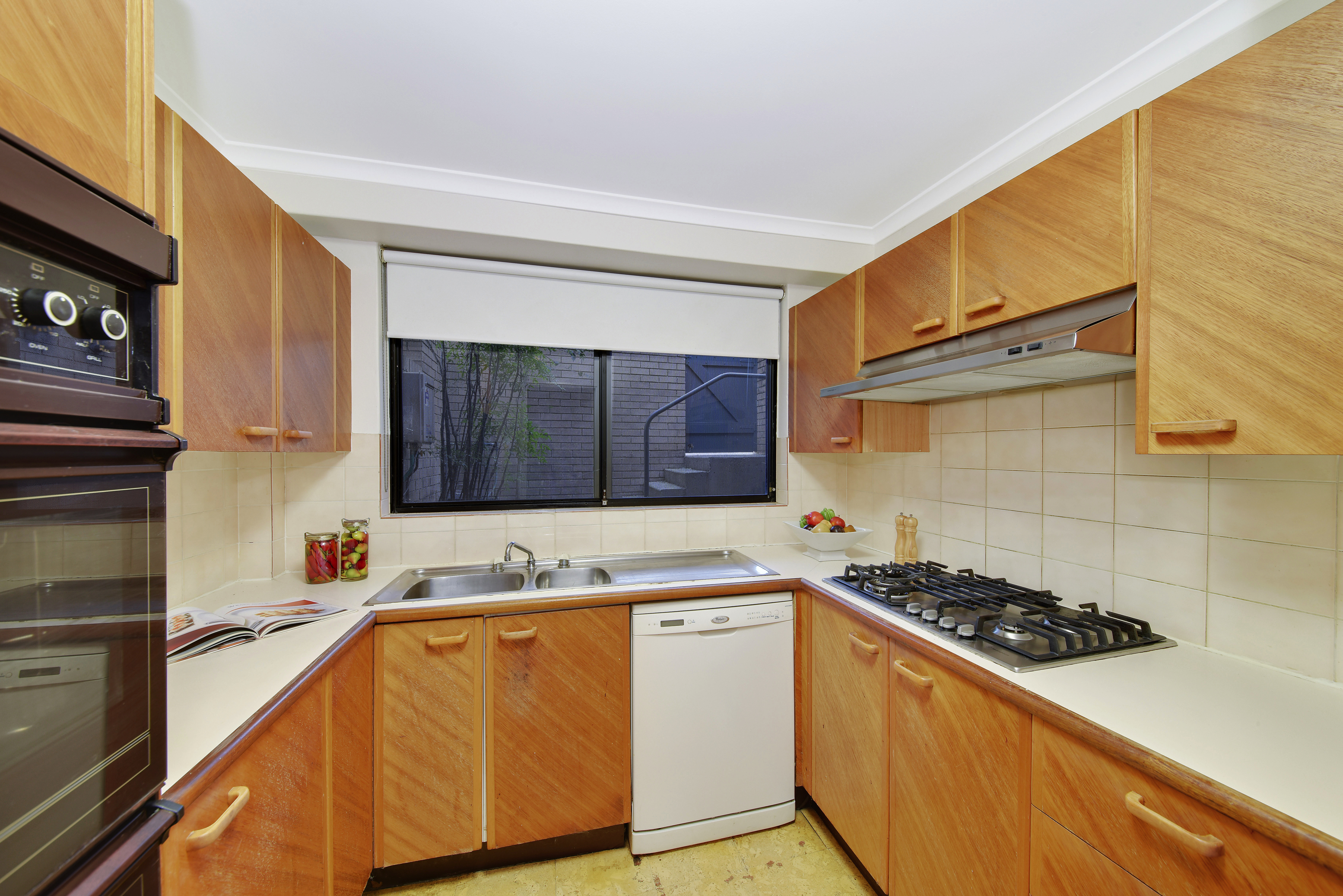 > Timber style kitchen with gas cooking & dishwasher
