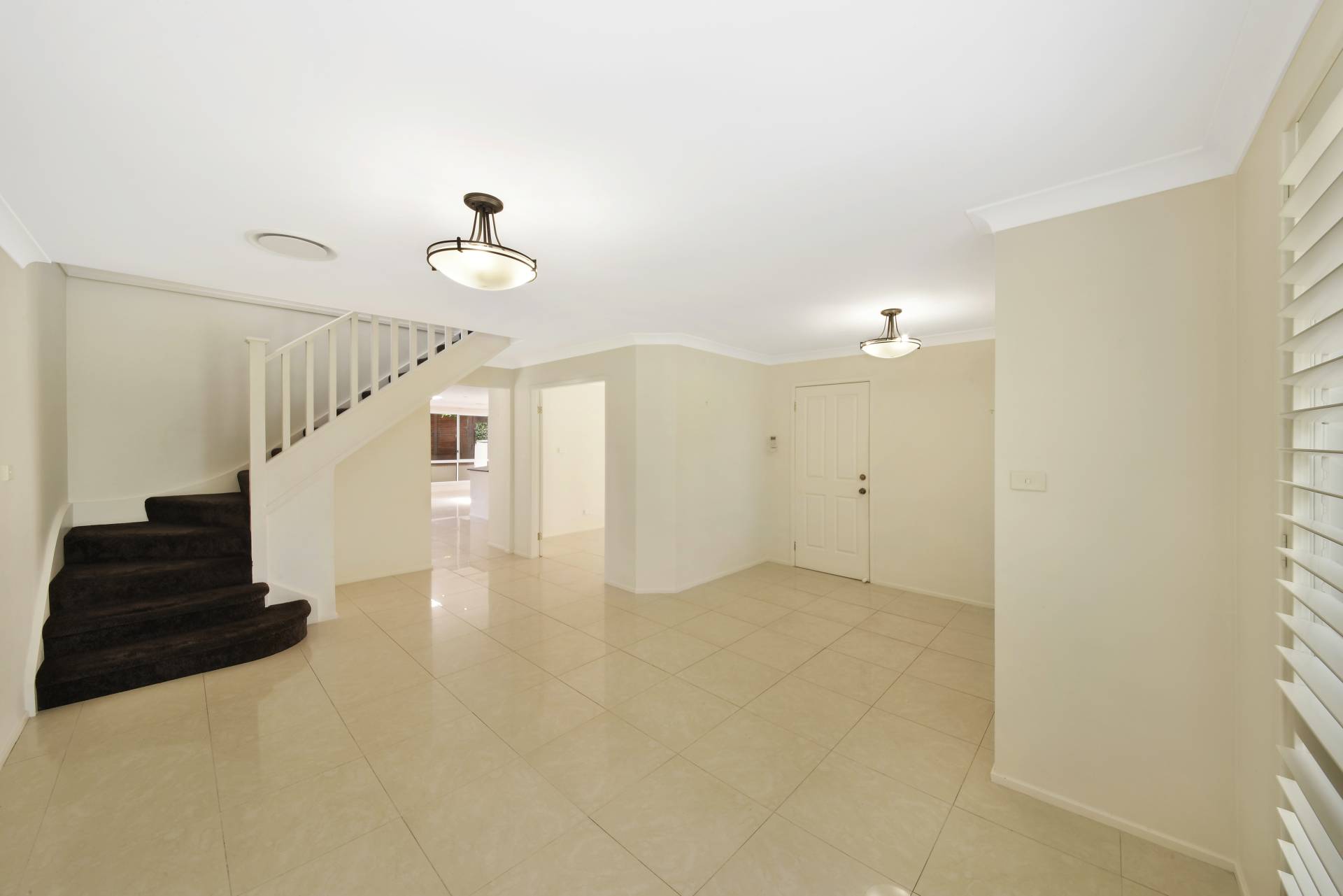 > Porcelain tiling throughout lower level of house