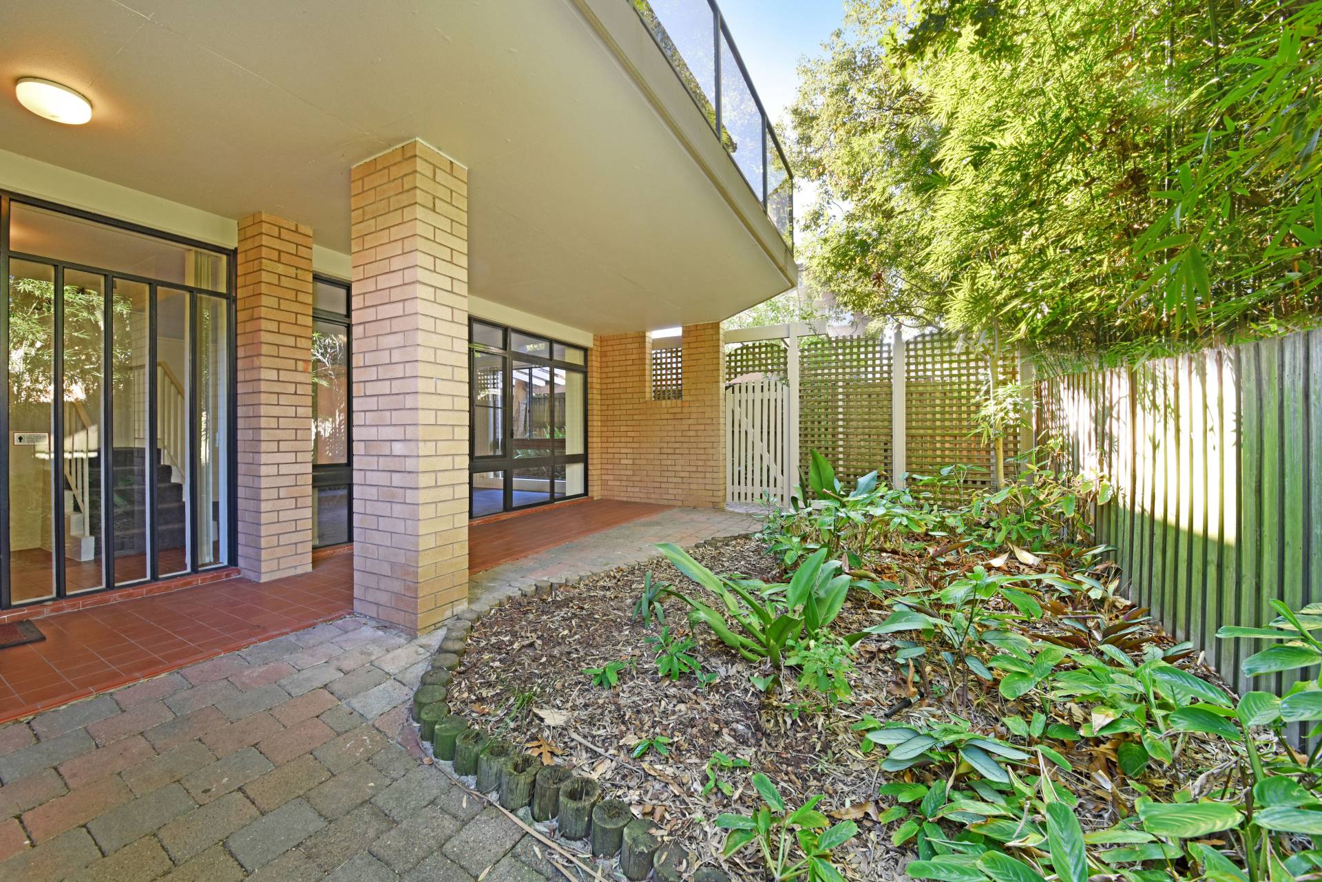 > Enclosed front and rear courtyards
