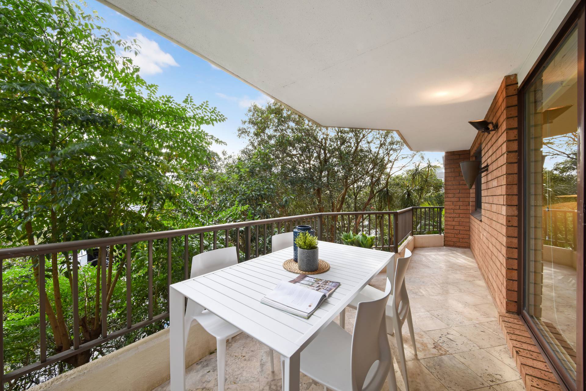 > Large sunny entertaining balcony
