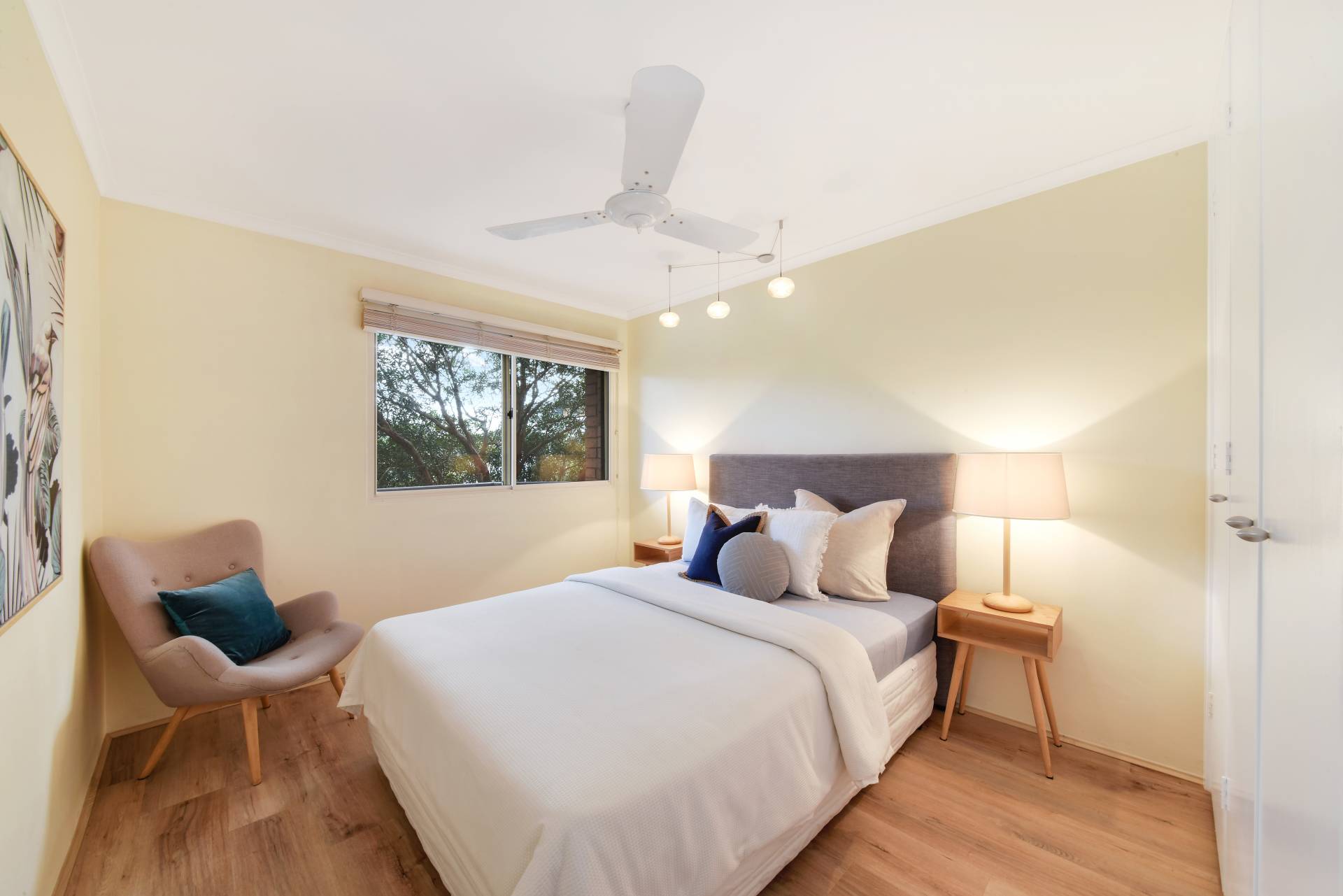 > Light and airy double size bedroom with built-in wardrobes